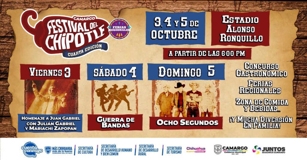 Municipio de Camargo y Estado invitan a la Cuarta Edición del Festival del Chipotle: expo agroindustrial, conciertos, comida y ferias regionales Read More »